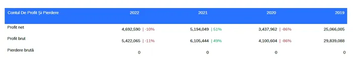 Pentru anii fiscali 2021 și 2022 nu au mai fost depuse datele financiare, potrvit informațiilor publicate pe site-ul Ministerului Finanțelor.