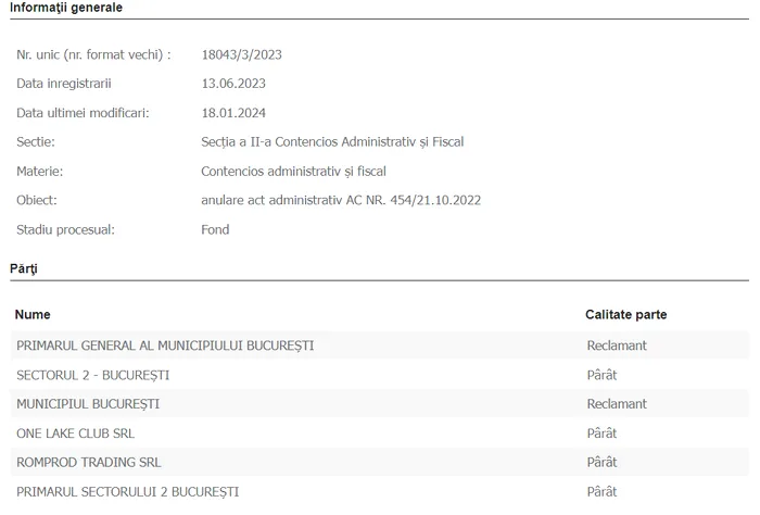 „Tip solutie: Respinge cererea. Soluția pe scurt: Admite excepţia lipsei calităţii procesuale active a reclamanţilor. Respinge acţiunea în integralitate ca fiind formulată de persoane fără calitate procesuală activă. Ia act că pârâţii nu au solicitat cheltuieli de judecată. Cu drept de recurs în termen de 10 zile de la comunicare, în privin?a soluţiei dispuse pe cererea de anulare a autorizaţiei de construire. Cu drept de recurs în termen de 5 zile de la comunicare, în privinţa soluţiei dispuse pe cererea de suspendare a executării autorizaţiei de construire. Cererea de recurs se va depune la Tribunalul Bucureşti – Secţia a II-a de contencios administrativ şi fiscal. Pronunţată prin punerea soluţiei la dispoziţia părţilor prin mijlocirea grefei instanţei azi, 17.01.2024. Document: Hotarâre 40/2024 17.01.2024”, a decis judecătoarea Stela Stoicescu de la Tribunalul București.