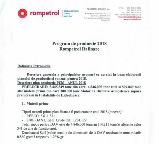 De asemenea, este binecunoscut faptul că rafinăria Rompetrol Midia este conceputa tehnologic pentru a procesa țiței rusesc URAL – REBCO (după cum se poate vedea și în programul de producție al rafinăriei din anii anteriori), iar orice schimbare de țiței este foarte greu de realizat și costisitoare, cu efecte foarte grave asupra randamentelor și costurilor”, avertizează sursele Gândul.