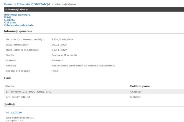 E-Dynamic Structures, executantul terminalului de combustibil, a cerut insolvența JT Grup Oil, iar „lucrările au fost sistate încă din data de 10 septembrie 2024.