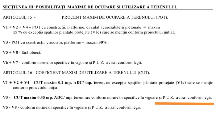 Tot în PUG apare descrierea a ceea ce înseamnă V3 – respectiv baze sportive. Și spune «CUT maxim o,35 mp de teren», un coeficient de utilizare extrem de mic, nu poți să faci un stadion modern, cu hoteluri pentru sportivi, cu baze de relaxare etc. pe o,35 mp.