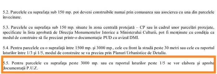 Iată ce vedem în Regulamentul General de Urbanism, aferent PUG, articolul 5.5: «Pentru parcelele cu suprafața peste 3.000 mp se vor elabora și aproba documentații PUZ».