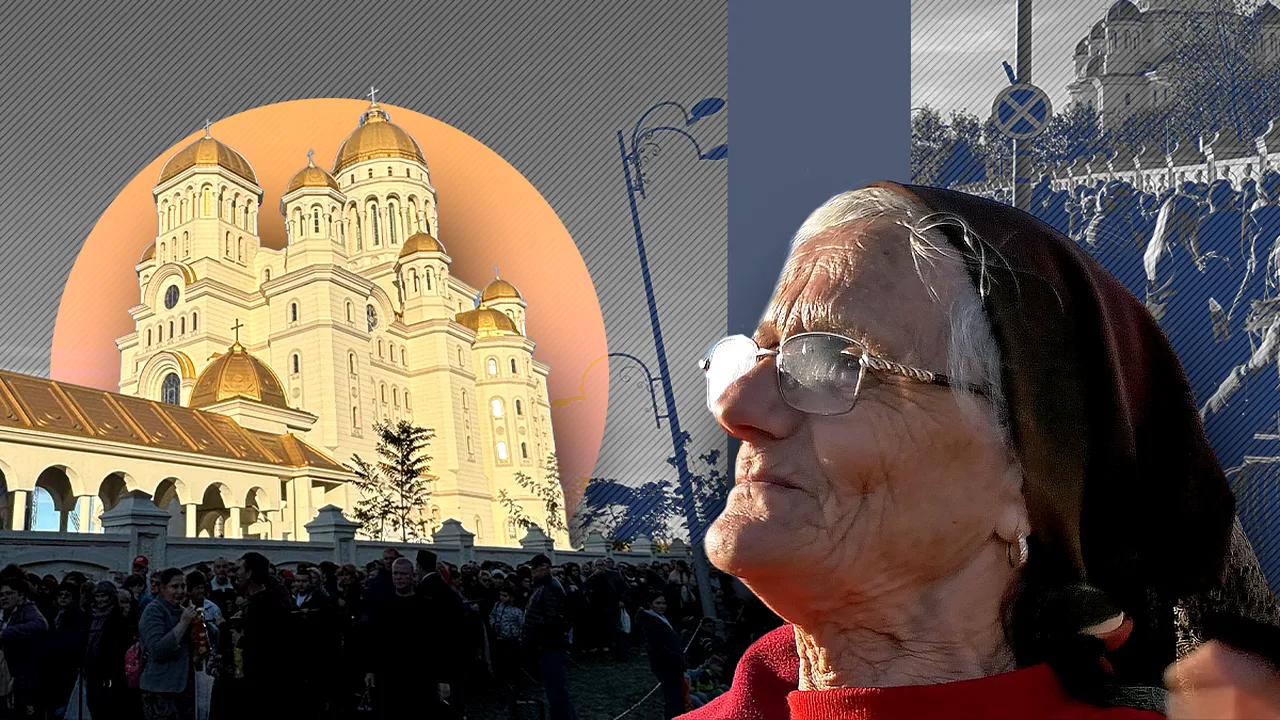 Eu m-am pus aici ca să mă sprijin de gardul acesta. Soțul e mai în vârsta decât mine. Fiica ne-a adus aici. E impresionantă catedrala. Mare. Frumoasă. De aceea mi-am dorit să o văd. Am văzut-o la televizor și am zis că vreau să ajung acolo. Am venit să mă bucur și să le povestesc nepoților”, ne-a mărturisit doamna Angela.