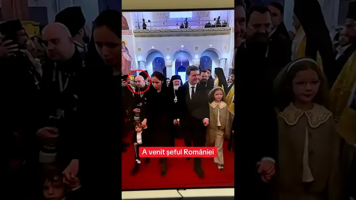 După ce cuplul prezidențial a intrat în Catedrala Mântuirii Neamului, unul dintre „voluntari” a încercat să se poziționeze cât mai bine și și-a făcut loc pentru a ajunge, ulterior, în fața lui Nicușor Dan.