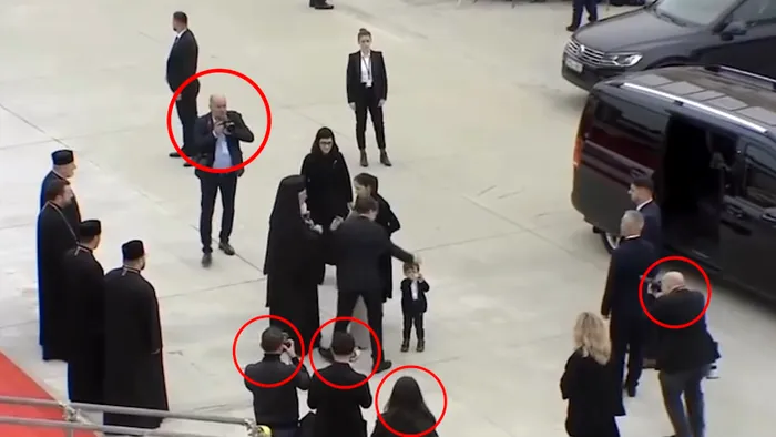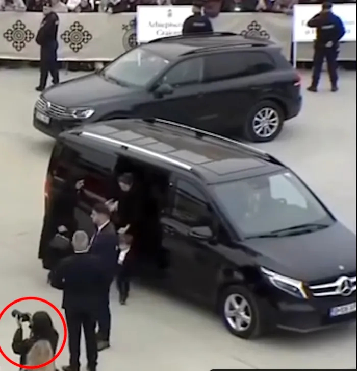O armată de „voluntari” responsabili cu jurnalul foto-video al președintelui României au imortalizat momentul în care Nicușor Dan a descins din „duba prezidențială”, iar apoi s-a îndreptat împreună cu familia către preoții care îl așteptau în fața Catedralei și a primit binecuvântarea.