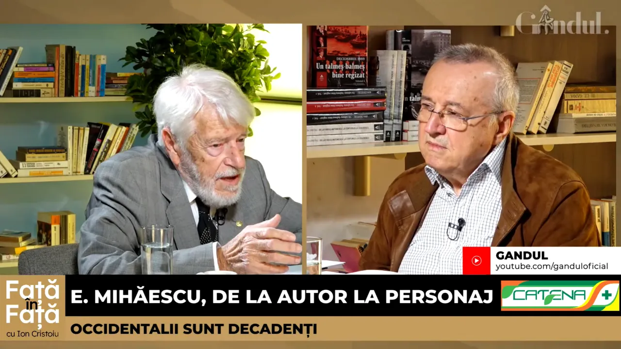 Eugen Mihăescu, grafician, scriitor și politician a fost invitatul emisiunii Față în față cu Ion Cristoiu, realizată de publicistul și scriitorul Ion Cristoiu. Academicianul spune că îi este teamă că nu va apuca să vadă ce se întâmplă cu războiul, ca este posibil să nu mai trăiască până la primăvară.