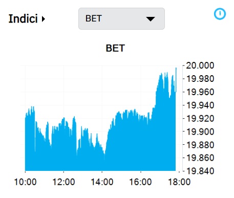 Dacă în primele minute de tranzacționare de luni, indicele BET înregistra o scădere de 0,21%, la finalul zilei, la ora 18:00, acesta a crescut la 0,43%, după un rulaj de 56,32 de milioane de lei (11,11 milioane de euro).