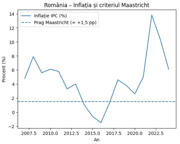 Noi, rămânem în afara ei, ne uităm de pe margine și chibițăm prostește. Acum câțiva ani îndeplineam criteriile de convergență nominală. Mai exact, în anii 2014-2015, cel mai bine îndeplineam aceste criterii în 2015. Ca urmare a unor ajustări fiscale majore produse în anii de dinainte, ca răspuns la criza severă din 2010 și 2011.Atunci îndeplineam cele 4 criterii de convergență nominală pentru a fi admiși în ERM 2 pentru 2 ani și pentru a trece la Zona Euro în 2017.