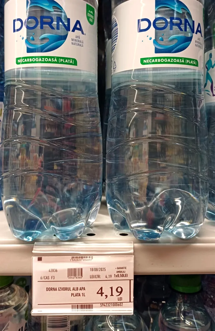 „Au explodat prețurile la apă minerală naturală plată! Un litru de apă minerală plată Dorna se vinde la Mega Image cu 4,19 lei! Apă minerală naturală plată la preț de lapte??? Ce e de făcut? Încotro se îndreaptă nivelul de trai al românilor”, se întreabă APC.