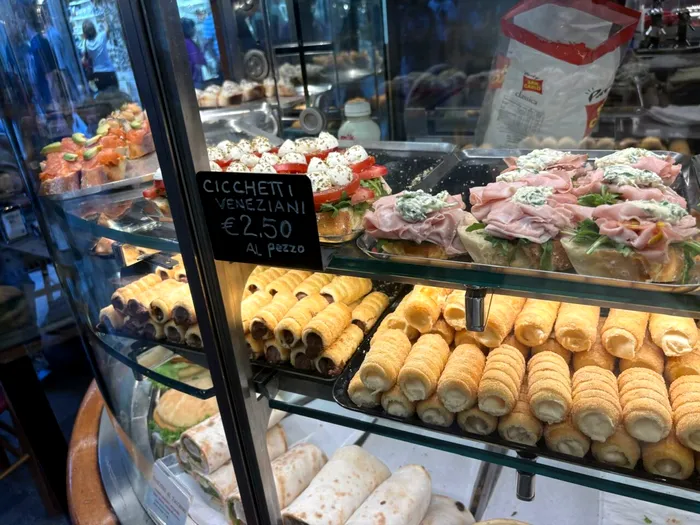 În vitrinele restaurantelor și cofetăriilor venețiene se pot găsi o varietate mare de cannoli: cu cremă de ciocolată, vanilie, cremă de fistic, frișcă. Îl găsești alături de sandvișurile italiene cu salam mortadella, caprese cu roșii și brânză mozzarella, renumitele „pincho”, gustări din Țara Bascilor cu somon afumat,  precum și sandvișurile cu prosciutto și brânză de brie.