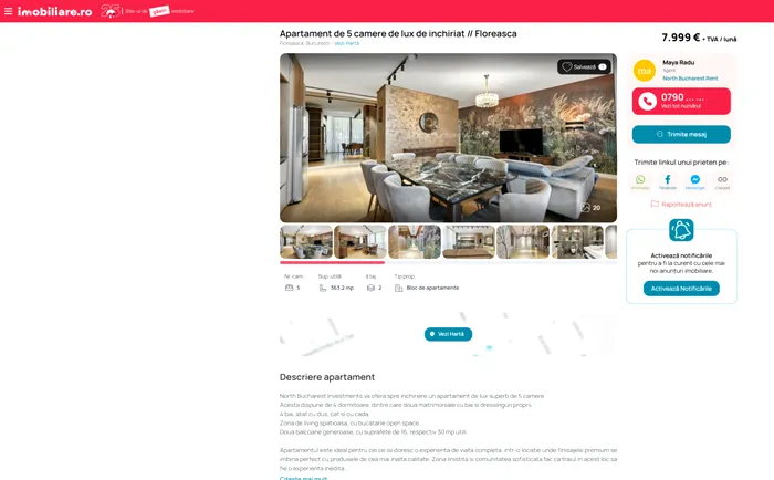 Iată cum arată un apartament de lux cu cinci camere din cartierul Floreasca, care poate fi închiriat lunar pentru suma de 8.000 euro!