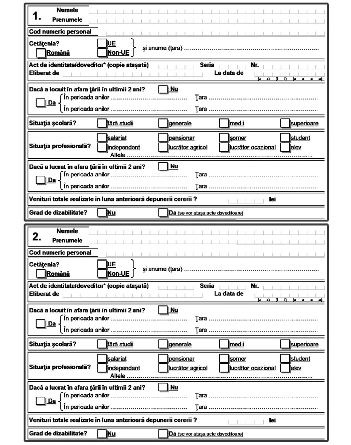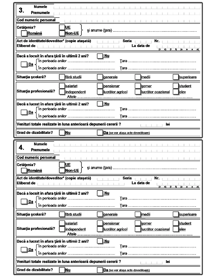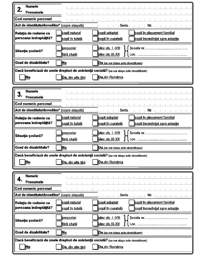 • a) copii după actele de identitate ale persoanei singure, respectiv ale membrilor de familie;