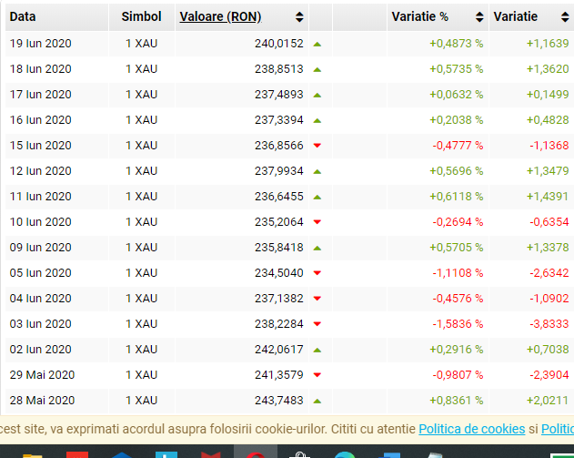CURS VALUTAR – gramul de aur 18 iunie 2020