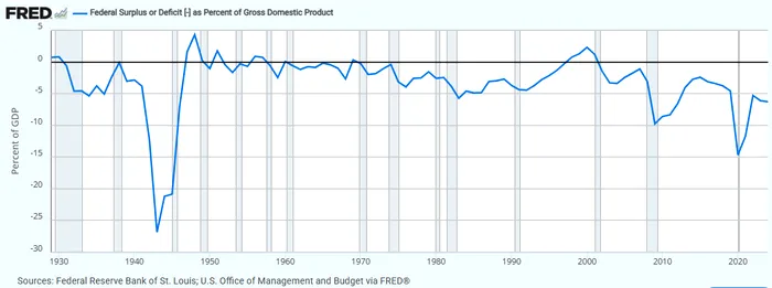 Mai constați că deficitul bugetar în PIB s-a adâncit dramatic în timpul pandemiei și că în anul 2024 s-a înregistrat un record negativ al ultimilor ani (-6,3% din PIB). Te uiți mai atent și vezi că dacă dai la o parte anii 2020 si 2021 (anii pandemiei) și perioada 2009-2012 (anii crizei financiare globale), observi că ponderea deficitului bugetar în PIB înregistrată în anul 2024 este cea mai ridicată din 1946 încoace. Ai mai ajuns și cu datoria la 125% din PIB, cea mai mare pondere din 1946 până în prezent (Infografic 2).
