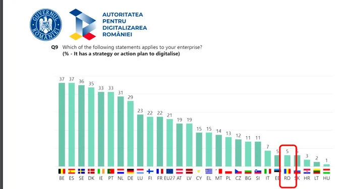 Faptul că IMM-urile româneşti se poziţionează către coada clasamentului, atât în ceeea ce priveşte adoptarea tehnologiilor de bază, cât şi în ceeea ce priveşte tehnologiile avansate, arată că lipsa unei strategii de digitalizare este simptomul unor probleme mai profunde, de tip structural, ecosistemic şi de cultură antreprenorială, se arată în studiul ADR care analizează barierele în digitalizarea mediului privat din România. Studiul citat mai relevă că digitalizarea nu este, pentru IMM-urile românești, o miză importantă comparativ cu alte state membre ale Europei.