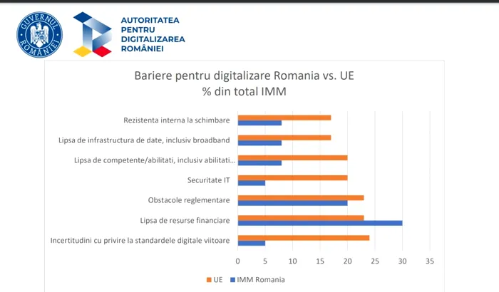 Mai exact, IMM-urile din România, care apreciează că există bariere pentru digitalizare, reprezintă doar 53% din total, cu aproape 10% mai puţin decât media europeană. Însă această plasare sub media europeană trebuie interpretată ȋn contextul datelor de bază cu privire la digitalizarea IMM-urilor (indicele DESI) şi al dezirabilităţii relative a digitalizării, se precizează în studiu.