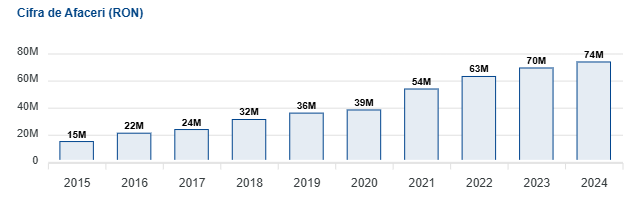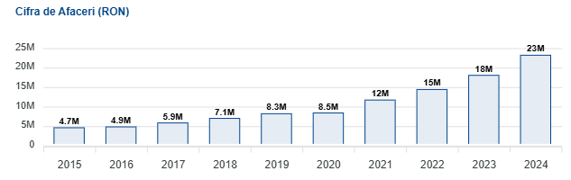 Florăria Iris urmează în clasament și a înregistrat o cifră de afaceri de 23 mil. lei, în creștere cu 28%, și un profit net de 5,9 mil. lei în 2024. Compania a raportat 47 de angajați, vânzările per angajat au fost de 496.000 lei, iar profitul per angajat a fost de 126.000 lei.