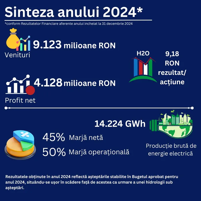 „Grupul Hidroelectrica a înregistrat o scădere a rezultatelor operaționale și financiare în anul 2024, față de 2023, influențată în principal de condițiile hidrologice mai puțin favorabile, care au dus la o producție hidroenergetică redusă și au afectat volumul de energie disponibil pentru comercializare. Performanța grupului s-a menținut în linie cu obiectivele stabilite în bugetul aprobat pentru anul 2024, cu o ajustare marginală față de estimări”, a anunțat compania.