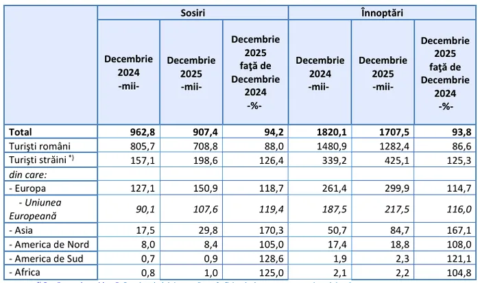Prima pagină » Economic » INS confirmă declinul turismului românesc. Numărul turiștilor străini și al nopților petrecute în structuri de cazare a scăzut în 2025