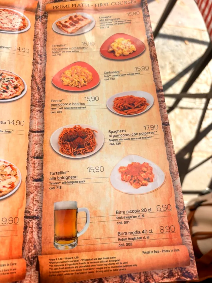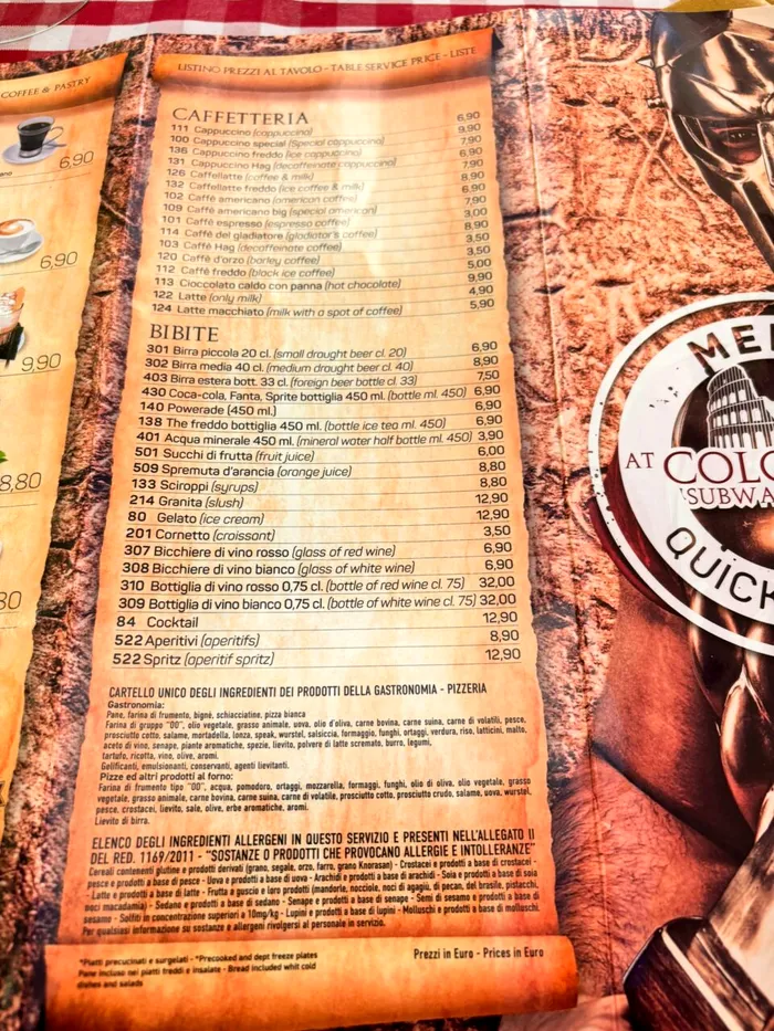Un turist român a plecat în Roma să viziteze Colosseumul. După ce a admirat splendoarea monumentală a amfiteatrului flavian, a mers la cel mai apropiat restaurant pentru a-și potoli foamea cu o pizza apetisantă. Până la urmă, e un pic obositor să explorezi întregul cele două nivele ale amfiteatrului. Și forma circulară a amfiteatrului chiar îți dă poftă de o pizza italiană. Turistul a făcut un popas la cel mai apropiat restaurant. A primit meniul și când l-a deschis, ce să vezi? Prețuri destul de „măricele” în euro.