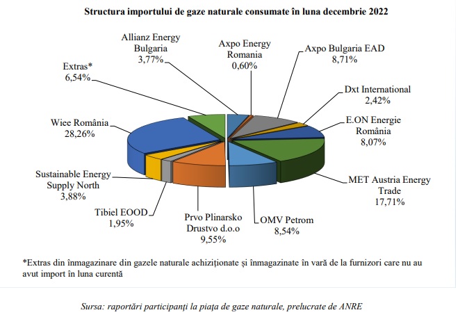 ANRE a detaliat și situația importului de gaze naturale consumat, defalcat pe furnizorii care cumpără direct de la furnizorii externi, la finalul anului trecut: