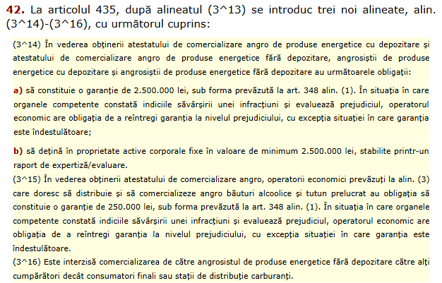 „Prin introducerea unei garanții financiare de 5.000.000 lei, cu un termen de conformare de 3 luni, OUG nr. 89/2025 creează o imposibilitate obiectivă de conformare pentru operatorii independenți, conducând la retragerea atestatelor existente și la imposibilitatea onorării contractelor de furnizare. Aplicarea ordonanței în forma actuală riscă să determine ieșirea simultană de pe piață a unui număr semnificativ de furnizori mici și mijlocii, fără ca operatorii mari să poată prelua rapid portofoliile acestora.”