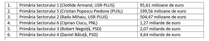 Primăriile sectoarelor 4 și 3, conduse de Daniel Băluță și Robert Negoiță, cei mai mulți bani europeni