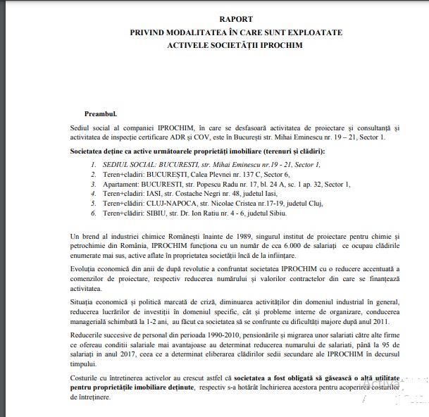 Costurile cu întretinerea activelor au crescut astfel că societatea a fost obligată să găsească o altă utilitate pentru proprietățile imobiliare deținute, respectiv s-a hotărât închirierea acestora”, se arată într-un raport al societății din 2017.