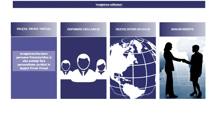 În noua pagină, utilizatorul urmează să dea click pe butonul din secțiunea Spațiul Privat Virtual (SPV), iar din cadranul numit „Persoane Fizice” urmează să aleagă butonul „Înregistrare utilizatori persoane fizice”.
