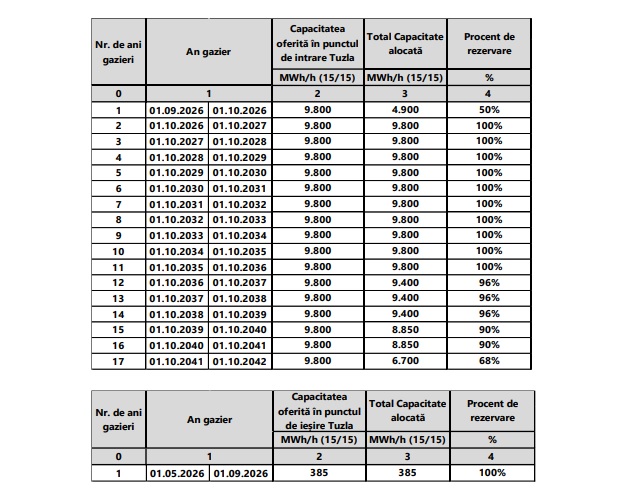 Transgaz a prezentat și rezultatul agregat al procesului de alocare de capacitate atât pe direcția de intrare cât și pe direcția de ieșire din SNT, în următorii ani gazieri:
