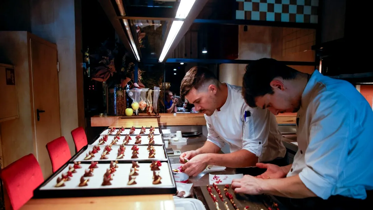 Bucătarii oferă mesenilor meniuri de degustare care includ fie mâncăruri clasice Disfrutar, fie mâncăruri de sezon, fiecare cu aproximativ 20 de feluri pentru 290 de euro.