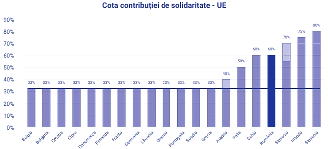 Cota aferentă contribuției de solidaritate era de minimum 33% (aplicată asupra profiturilor ce depășesc cu 20% media profiturilor din perioada 2018-2021), urmând ca statele membre să decidă asupra cotei efective.