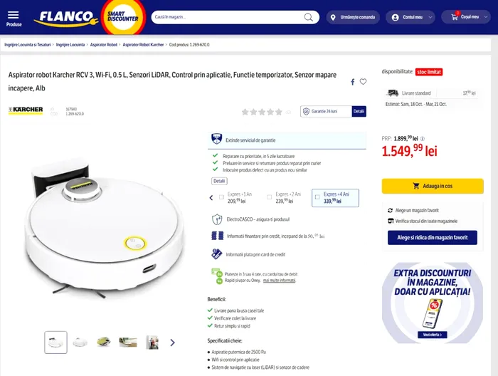 La Flanco, robotul Karcher RCV 3, costă 1.549,99 lei.