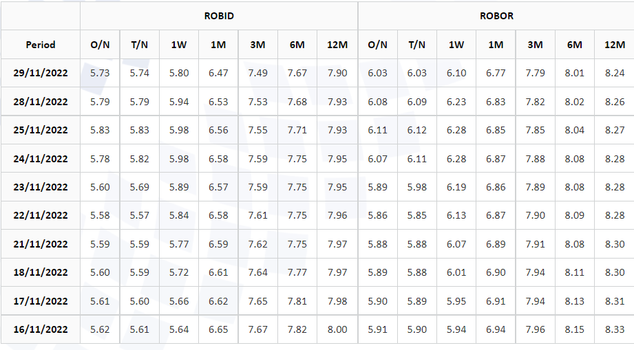 La începutul acestui an, indicele ROBOR la 3 luni era 3,02% pe an, iar în martie, indicele era cotat la 4,25%. Creșterea indicelui la nivelul actual a început în data de 24 februarie, atunci când Rusia a invadat Ucrainei.