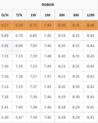 De asemenea, indicele la 6 luni, utilizat în calculul dobânzilor la creditele ipotecare în lei cu dobândă variabilă rămâne la 8,31% pe an, iar ROBOR la 12 luni a rămas la nivelul de marţi, de 8,44% pe an.