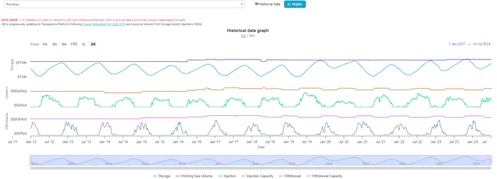 România are în iulie, în plin sezon – înainte de sezonul de extragere, care debutează la 1 noiembrue – un grad de umplere a depozitelor de gaze naturale de 80,24% din rezerva tehnică disponibilă la nivelul capacităților de stocare, conform datelor Gas Infrastructure Europe (GIE).