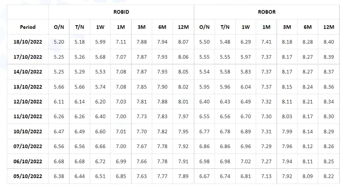 De asemenea, și indicele la 6 luni, care se utilizează în calculul dobânzilor la creditele ipotecare în lei cu dobândă variabilă, a urcat la 8,28% pe an, de la 8,27%, iar ROBOR la 12 luni a crescut la 8,40%, de la 8,39%.