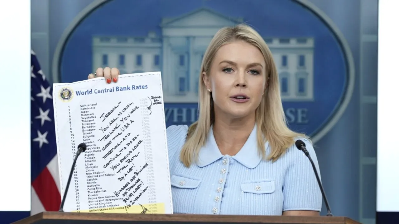 ”Dacă vă uitați la acest tabel cu dobânzile multor țări, primul loc este ocupat de Elveția, unde dobânda este de doar 0,25%. Cambodgia, Japonia, Danemarca, Thailanda, Botswana, Barbados, Taiwan, Bulgaria, Cuba, Suedia, Maroc, Cap Verde, Coreea de Sud, Algeria, Canada, Albania, Libia, Malaysia, China, Noua Zeelandă, Trinidad & Tobago, Cehia, Bolivia, Australia, Costa Rica, Bahamas, Kuwait, Papua Noua Guinee, Bosnia, Marea Britanie și Emiratele Arabe Unite – toate aceste țări au dobânzi mai mici decât Statele Unite, deși noi avem una dintre cele atrăgătoare și puternice economii din lume. Președintele i-a trimis această listă președintelui Fed”, a declarat, într-o conferință de presă, Karoline Leawitt, purtătoarea de cuvânt a Casei Albe.
