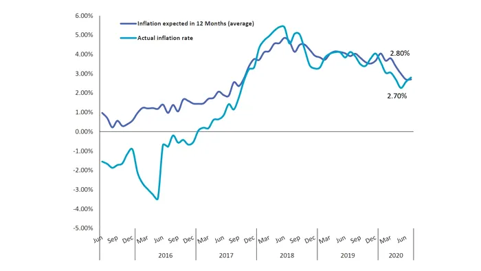 Nu în ultimul rând, rata anticipată a inflației pentru orizontul de 12 luni (august 2021 față de august 2020) a înregistrat o valoare medie de 2,70%.