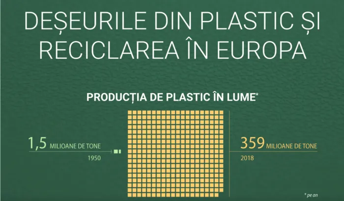 Dacă în 1950, la nivel global se producea 1.5 milioane tone de plastic, în 2018 am produs 359 de milioane de plastic.