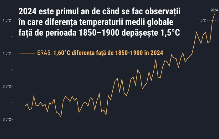 Astfel, 2024 este primul an din istoria observațiilor meteorologice când temperatura medie globală depășește pragul de 1.5°C, stabilit prin Acordul de la Paris din 2015.