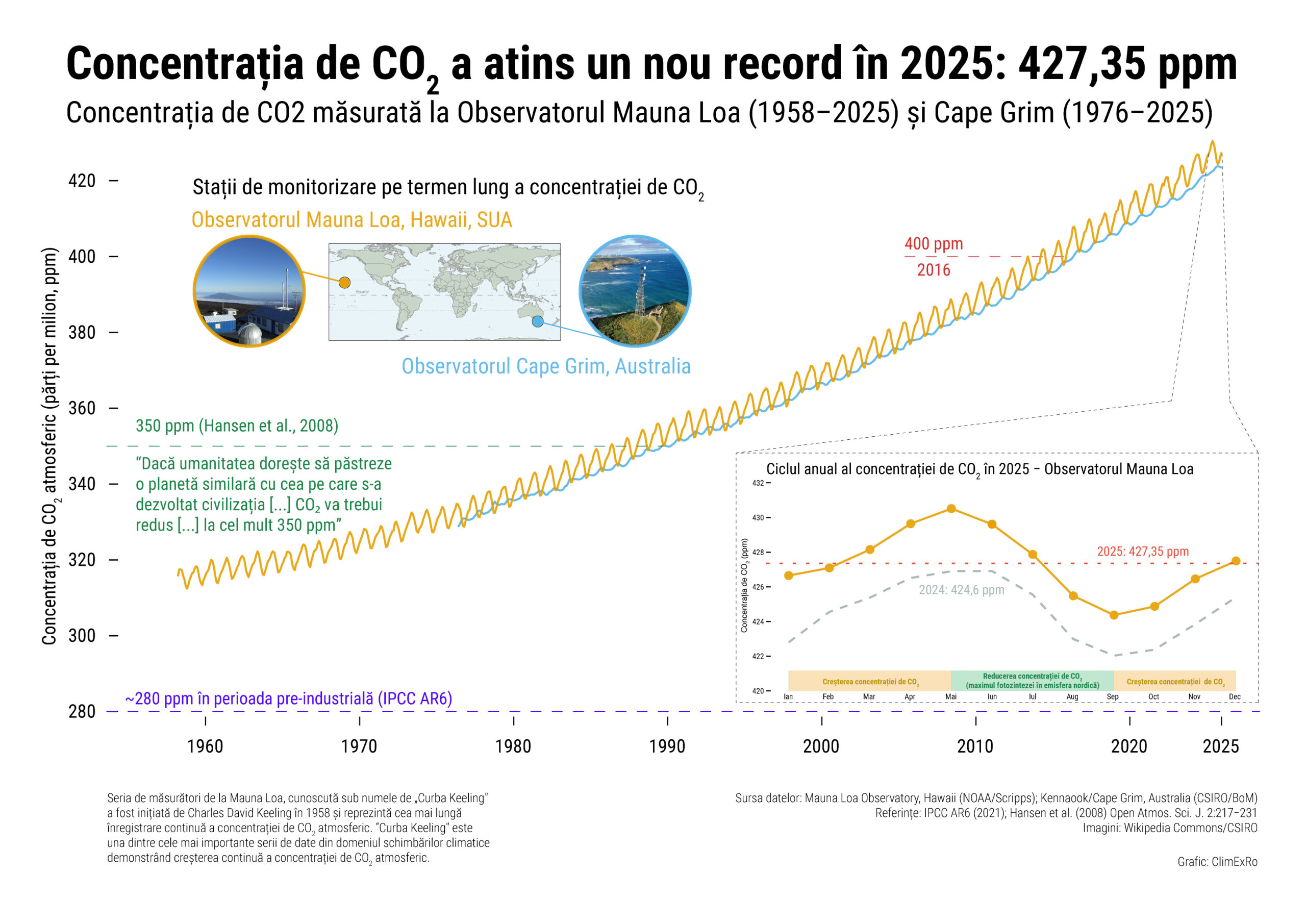 • Astăzi, am depășit cu mult acest nivel și continuăm să creștem concentrația de CO₂, notează dr. Bogdan Antonescu pentru Infoclima.