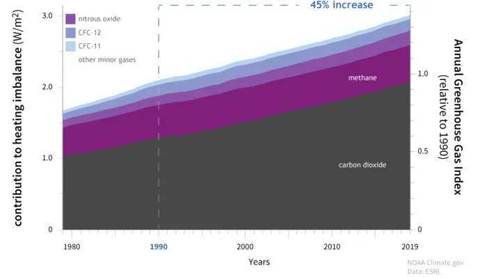 Fără acest efect de seră temperaturile pe planeta noastră ar fi negative. Totuși creșterea rapidă a cantității de dioxid de carbon în atmosferă a dus la o creștere constantă a temperaturilor globale.