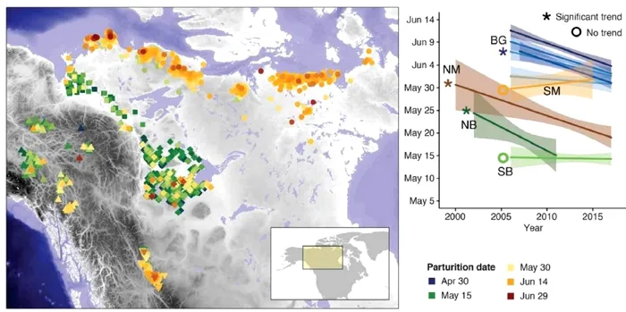Principalii factori determinanți ai răspunsurilor populației, cum ar fi migrația, parturiția (data nașterilor) și mișcarea de căutare a hranei, trec printr-o schimbare rapidă, sugerând că schimbările climatice afectează animalele în moduri care vor modela viitorul Arcticii.