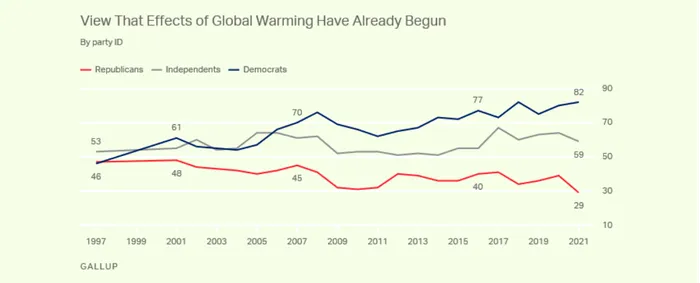 În SUA, perspectiva asupra schimbărilor climatice este determinată într-o mare măsură de afilierea politică