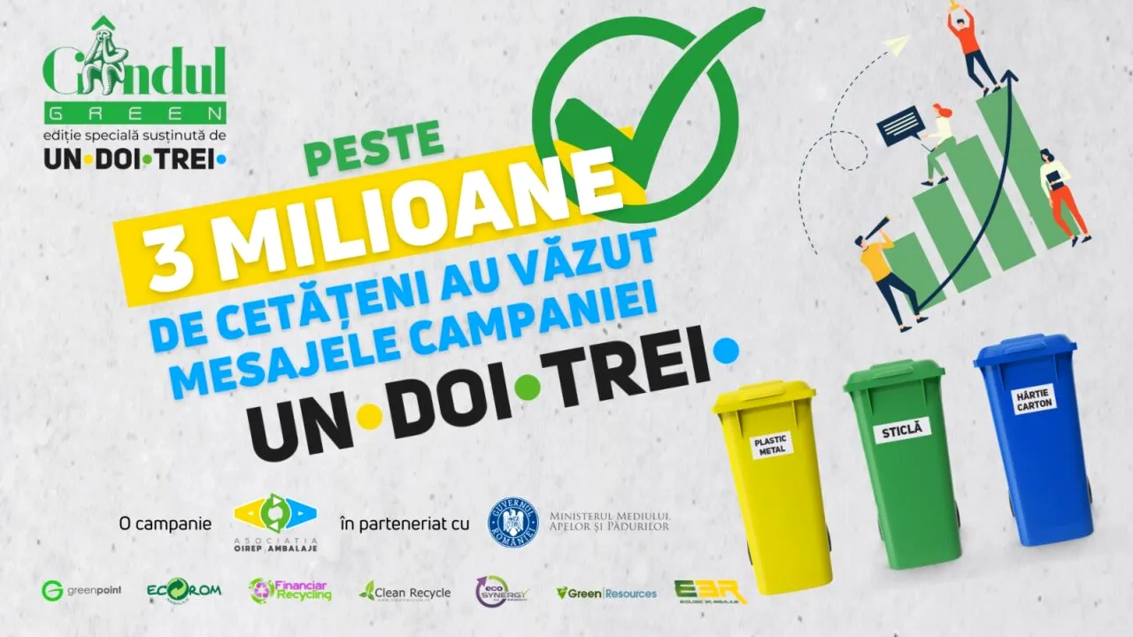 Campania de educare și informare “Un’ Doi Trei”, inițiată de Asociația OIREP Ambalaje, cu sprijinul Ministerului Mediului, Apelor și Pădurilor, a avut mesaje pe care “cetățenii le-au considerat necesare și importante, motiv pentru care le-au distribuit voluntar”, după cum a precizat Geanin Șerban, președinte Asociația OIREP Ambalaje, la “Gândul Green”.