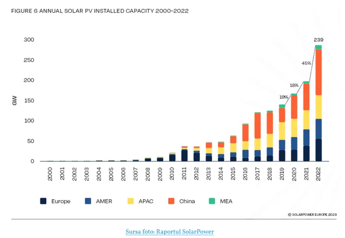 Conform unui nou raport Global Market Outlook For Solar Power 2023 – 2027, anul 2022 va rămâne în istoria recentă ca fiind anul în care energia solară a cunoscut cel mai mare adaos de capacitate energetică, determinată de creșterea prețurilor la energie, de stabilizarea lanțului de aprovizionare și de programele de redresare post-pandemică.