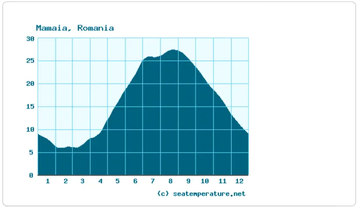 Graficul anual al variației medii a temperaturii apei în Mamaia
