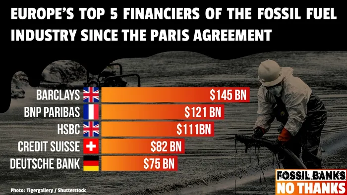 În ultimii 3 ani, conform celor de la Green Peace UK, sectorul bancar a investit la nivel global 1900 miliarde USD în combustibili fosili comparativ cu doar 129.7 miliarde USD în proiecte pentru dezvoltarea energiei regenerabile.