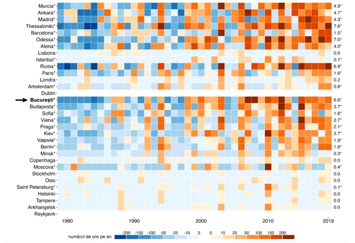 În acest interval, în România, valurile de căldură au dus la creșterea mortalității în special în regiunea de sud și de sud-est. Cei mai vulnerabili sunt bărbații cu vârste între 65-79 ani. Într-un alt studiu publicat tot în 2023, în revista The Lancet Planetary Health, a fost analizat riscul de creștere a mortalității în 30 de capitale europene pentru persoanele cu vârsta de peste 85 de ani.